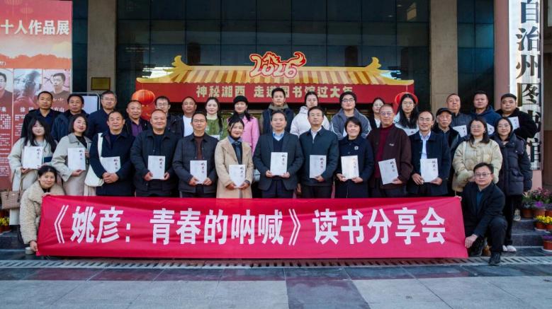 (通讯员:黄朝辉)113日下午,由湘西州保靖县人民代表大会常务委员会组织编著的《姚彦:青春的呐喊》读书分享会在湘西州图书馆举行。州委党史研究室、州文联、保靖县人大常委会、州图书馆等单位领导出席活动,州作家协会、文艺评论家协会、该书编委会的专家学者、读者代表及我院部分研究生共同参与。