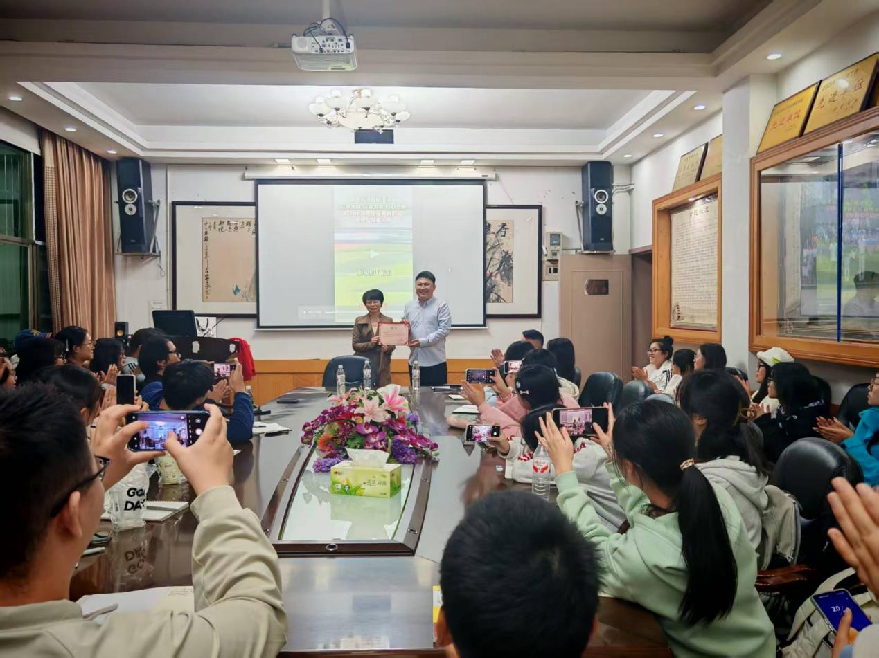 讲座现场,瞿建慧向董波颁发聘书,特聘这位湘西金牌主持人为吉首大学文学与新媒体学院从文班行业导师。讲座尾声,从文班首届班主任刘泰然对董波老师的讲座进行了点评;最后瞿建慧做了总结,勉励从文班的同学学习董波老师这种情怀,做一个有热情、有理想,有自己的人生规划的青年,将自己的专业与社会的需要紧密结合,为社会做出自己的贡献。